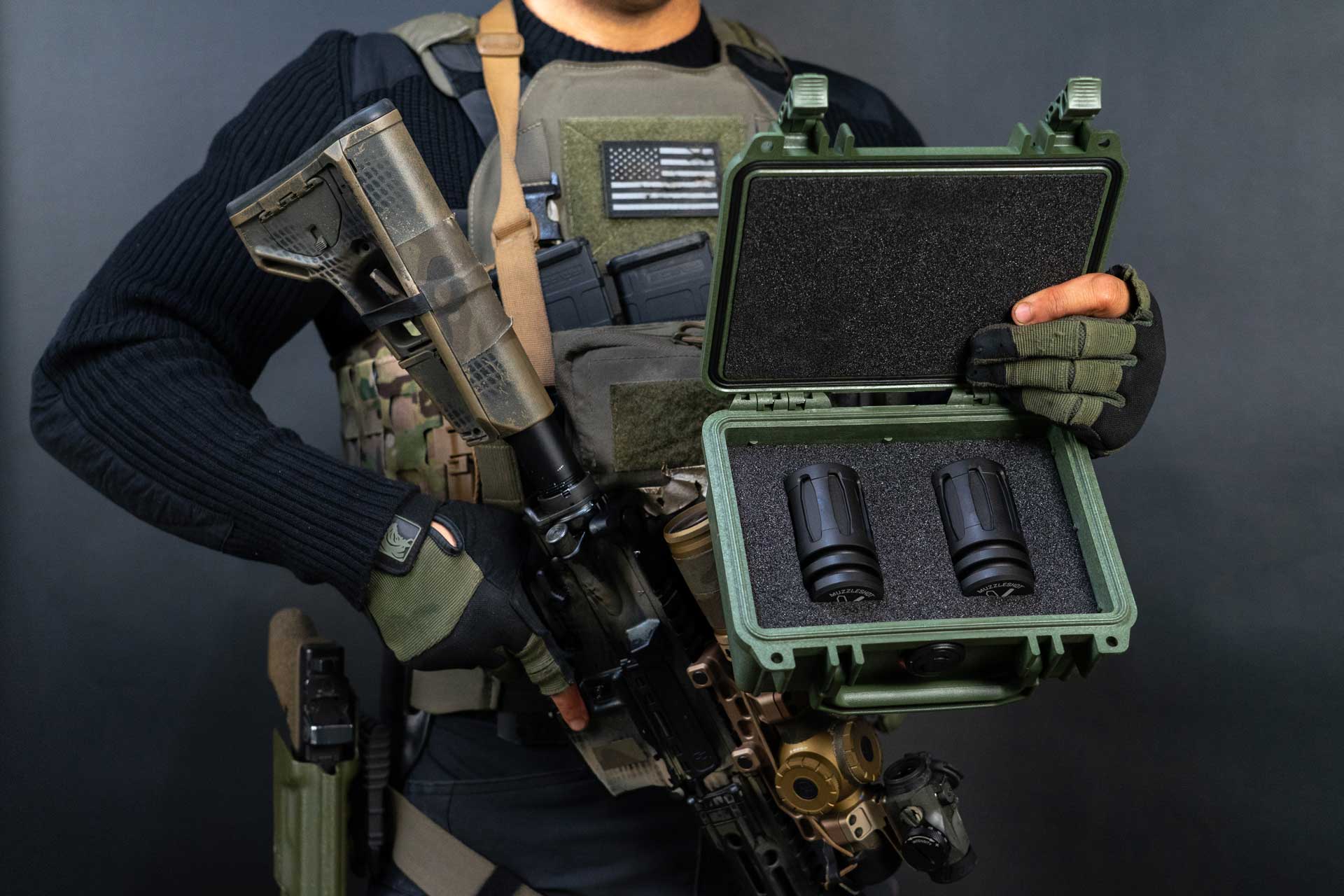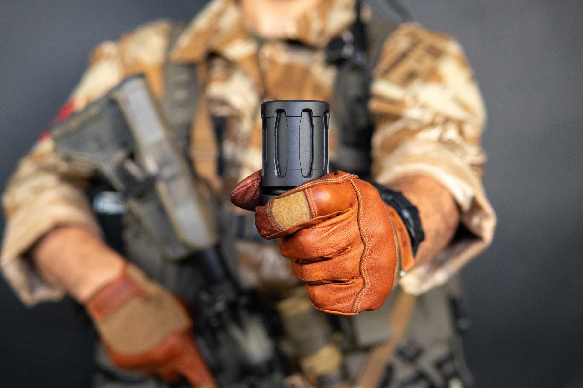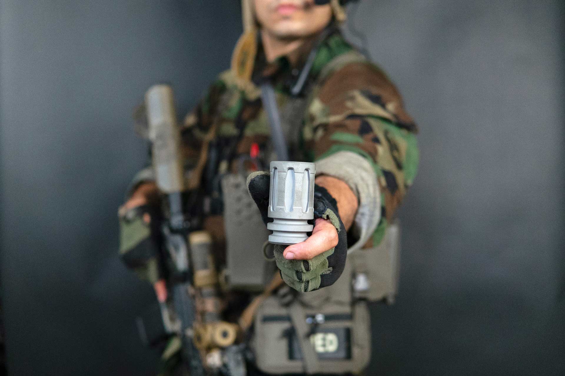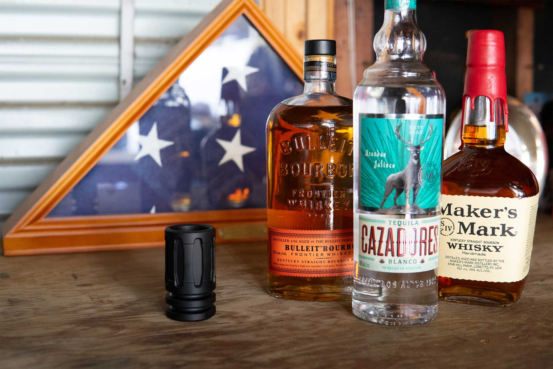MuzzleShot is an ornamental shot glass styled after the A2 flash hider from the M16 family of weapons. Machined from billet heat treated T6 6061 aluminum, anodized to MIL-A-8625 TYPE III mil-spec for unmatched strength.